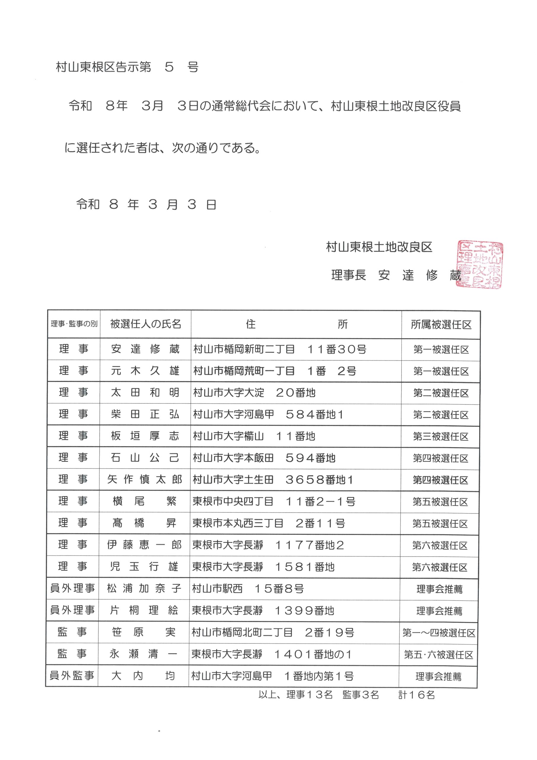 役員の選任確定に係る公告について